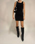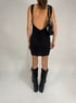 Abito elasticizzato che presenta una schiena completamente scoperta e arricciature (ruches) nella parte posteriore inferiore, che creano un effetto drappeggiato. Spalline larghe