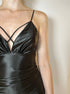Abito Raso Nero con Scollo a V