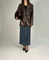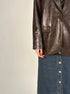 Blazer oversize realizzato in eco pelle con finitura leggermente lucida. Il taglio strutturato e la chiusura monopetto lo rendono un capo dal carattere deciso e sofisticato. Ideale per look contemporanei che uniscono stile ed etica.