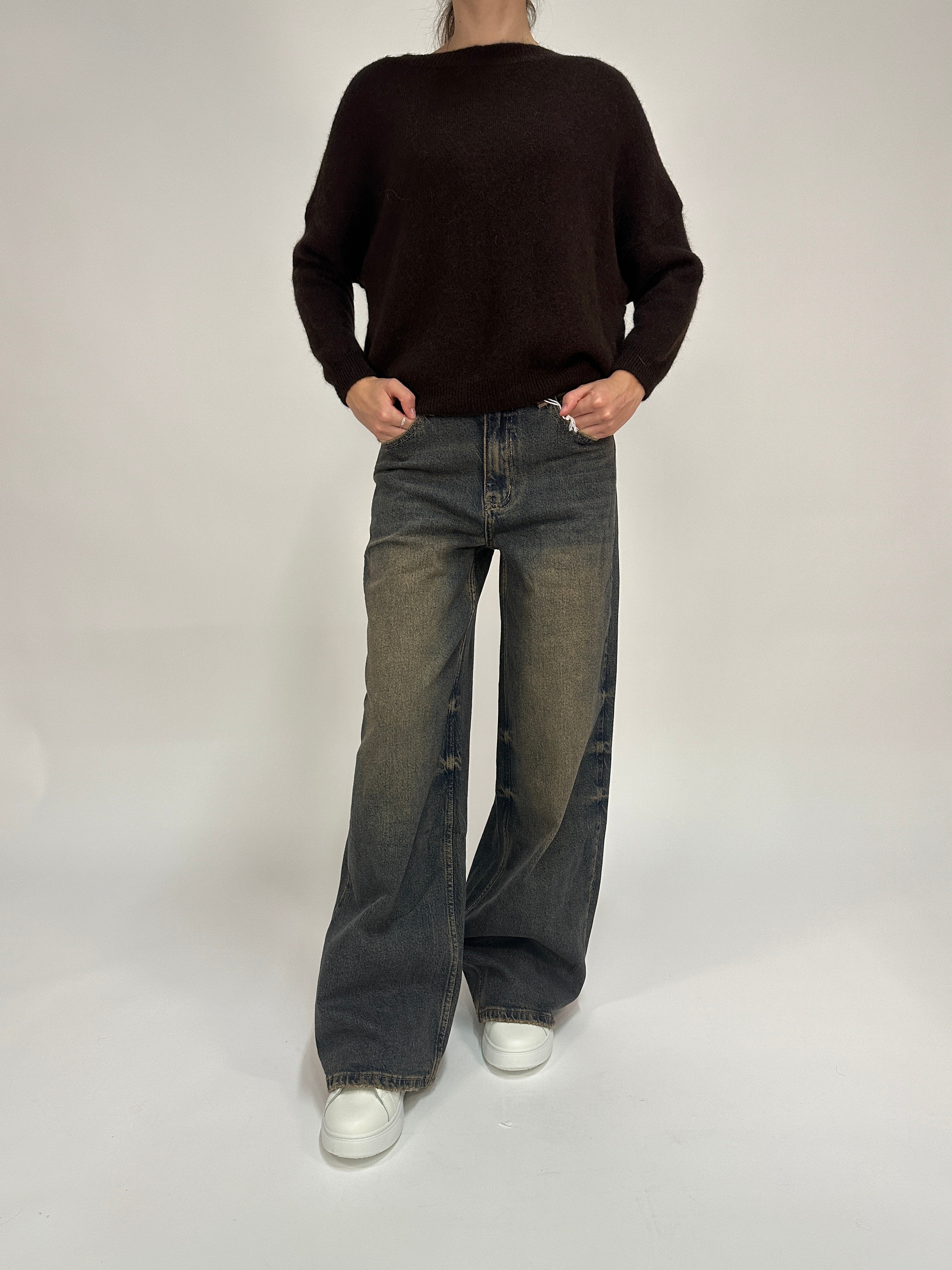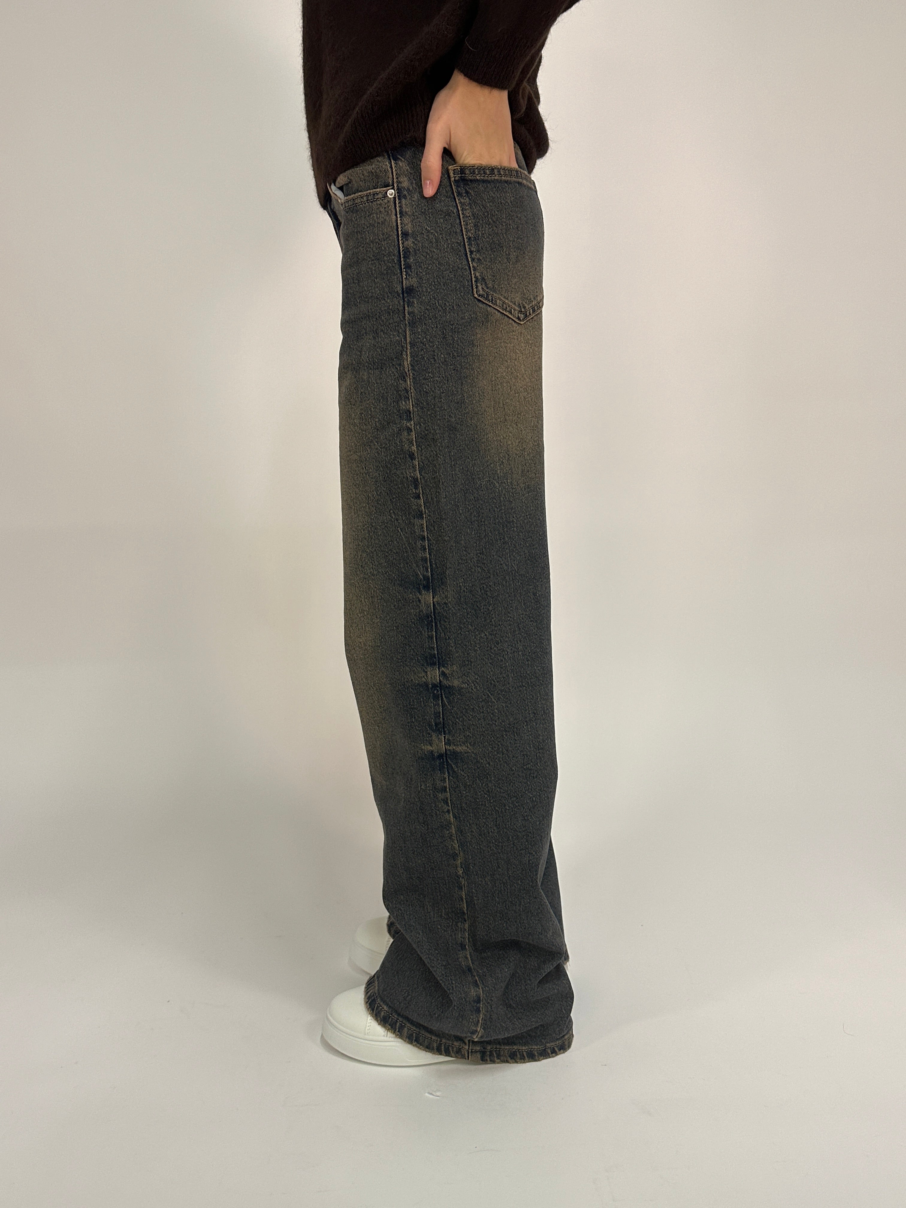 Jeans a gamba dritta in denim nero delavé, con lavaggio vintage e dettagli minimal. Modello a vita alta, versatile e perfetto per look casual o urban chic.