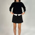 Shorts a vita alta neri con fascia bianca in vita e cuciture a contrasto, perfetti per outfit casual o sofisticati. Il taglio dritto valorizza la silhouette, rendendoli eleganti e versatili da indossare in ogni occasione.